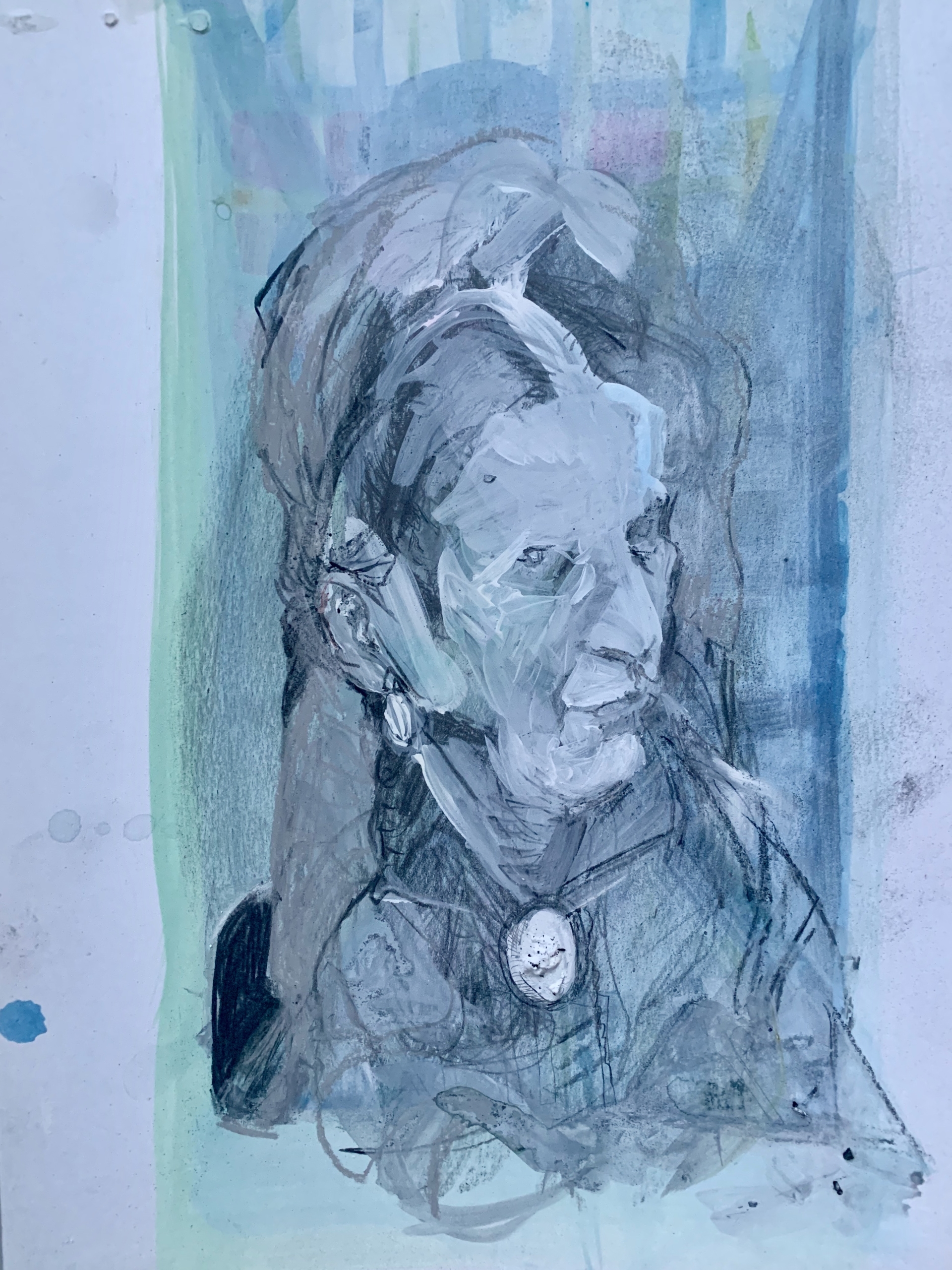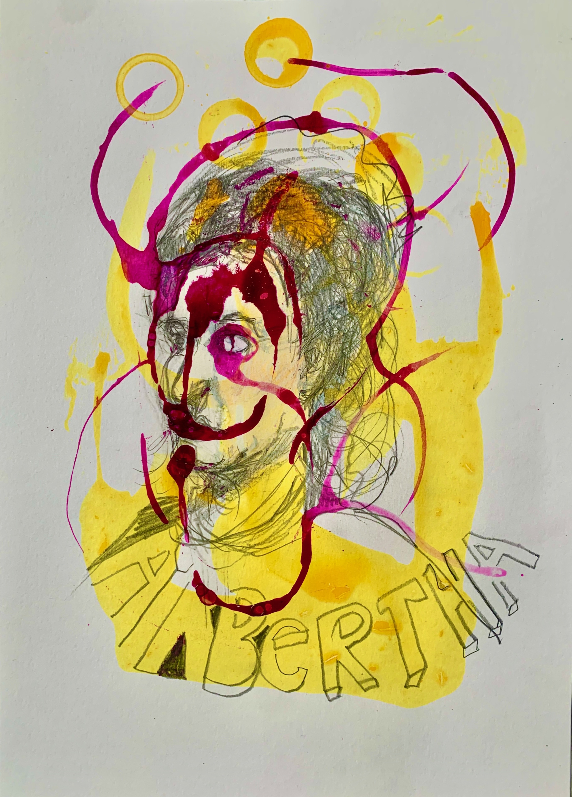 I love outsider art and wanted to know which of these artists are women. In each portrait I drew a piece of their own work. In the slideshow you can read a short biography of the artist.